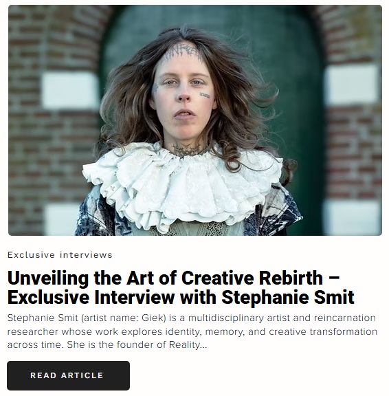 I’m excited to share my exclusive interview with Brainz Magazine, titled “Unveiling the Art of Creative Rebirth — Exclusive Interview with Stephanie Smit.” In this deep, thoughtful conversation, I explore the core of my work — from creative rebirth and symbolic expression to the principles behind Reality Cult, performance practice, past-life research, and what it means to live and work through multidimensional creativity. If you’ve ever wondered what drives my artistic path, this interview offers an in-depth look at how identity, memory, and creative agency intersect in my practice.