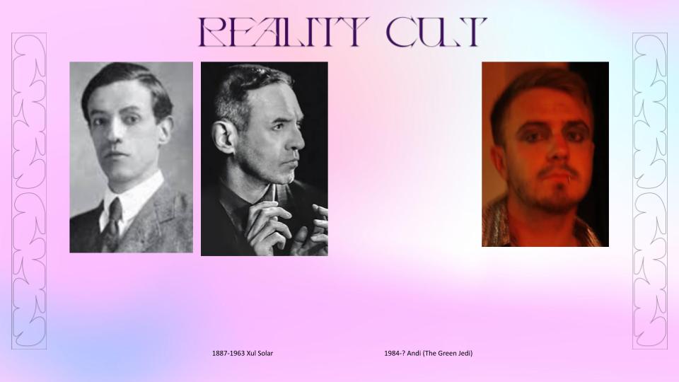 Facial and soul recognition comparison between the living individual Andi (The Green Jedi) and historical figure Xul Solar.